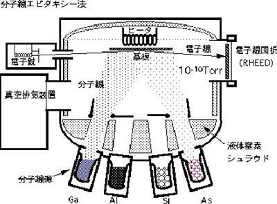 - 分子線エピタキシ(MBE)装置を用いてV-V族化合物半導体ヘテロ・ナノ構造の作製を行います.