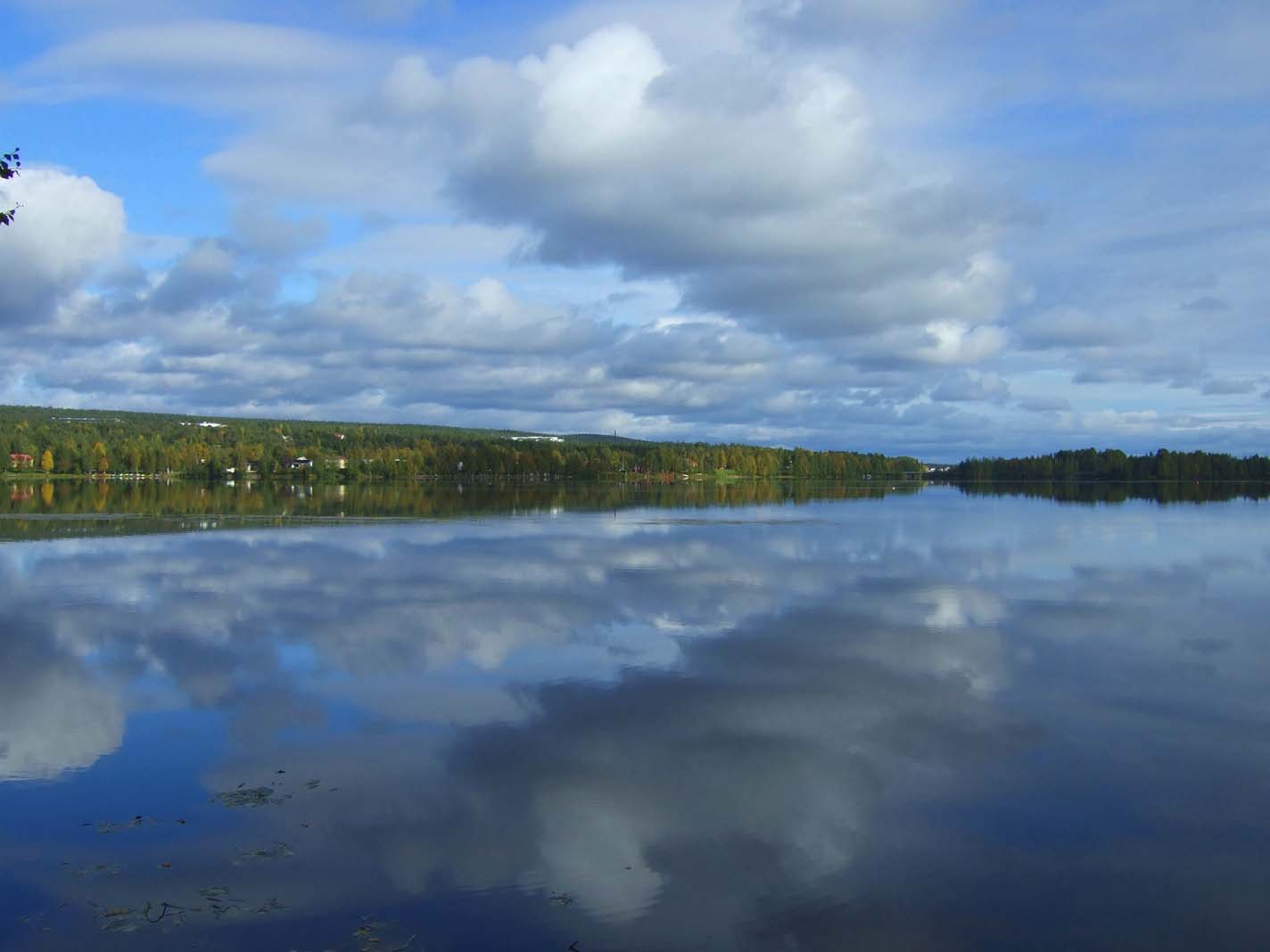 ロバニエミ市は北極圏に近く、自然の多い緑豊かな場所です。静かな湖が空を反射し美しい景色が広がります。