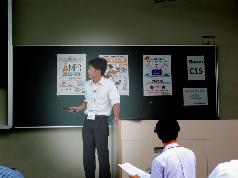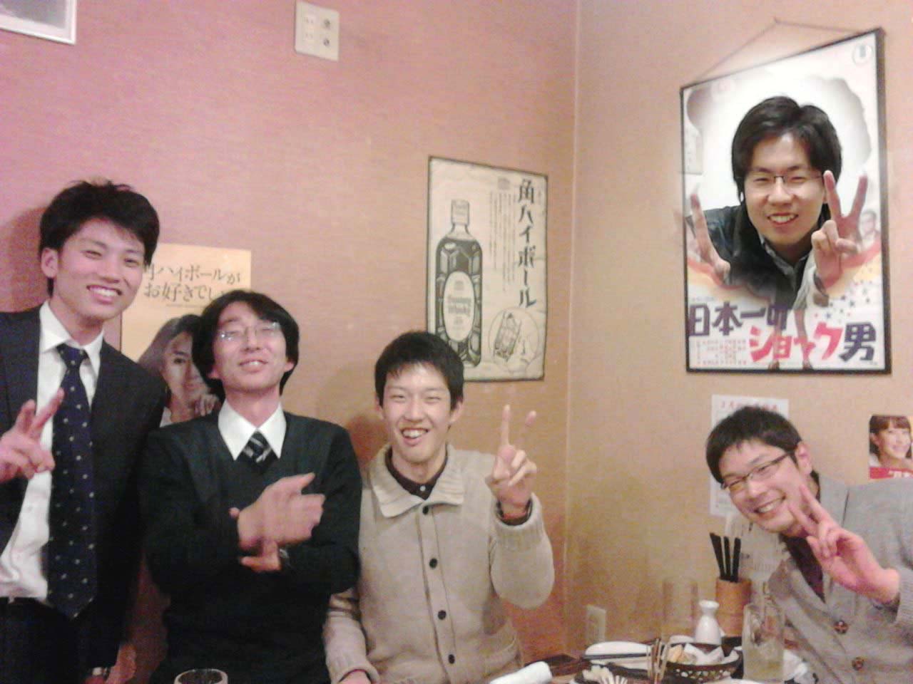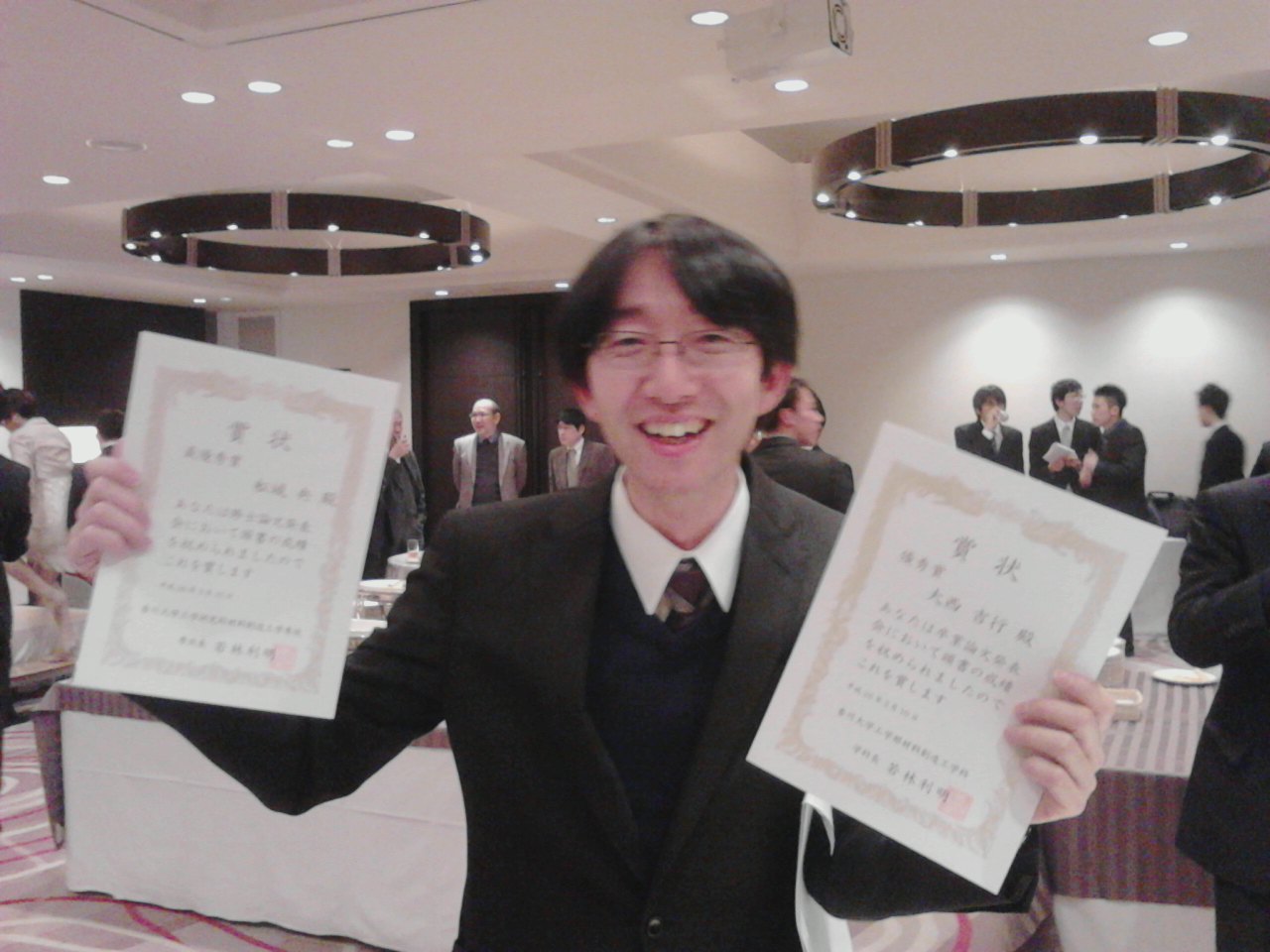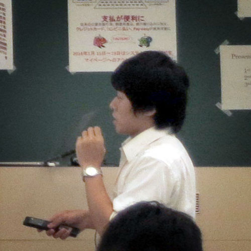修士課程の杉山くん、4年生の宇田くん、知久くん、三宅くん、無事発表終了。お疲れ様でした。