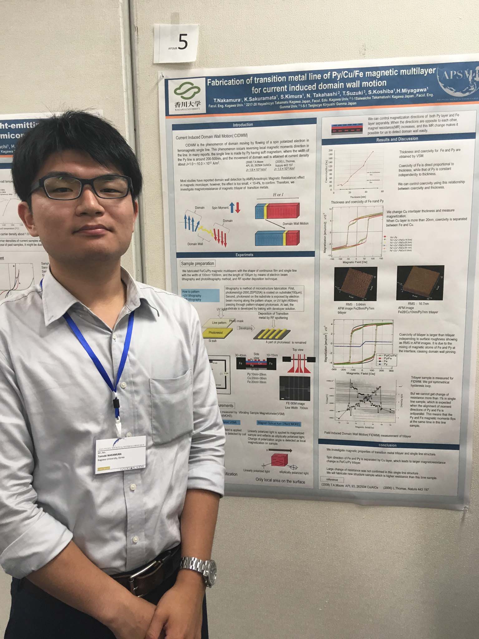 (口頭発表:友川 「遷移金属磁性多層膜単一ラインによる磁壁移動の検証」)