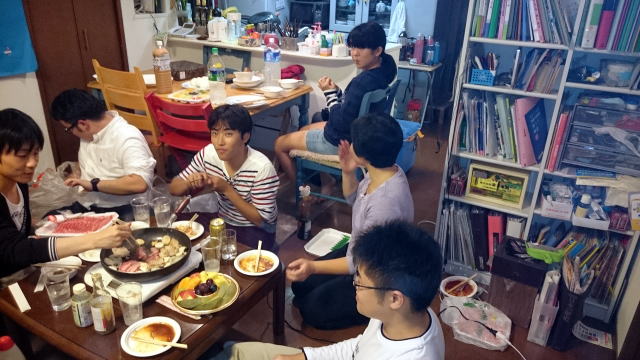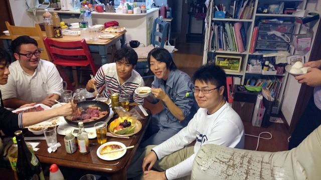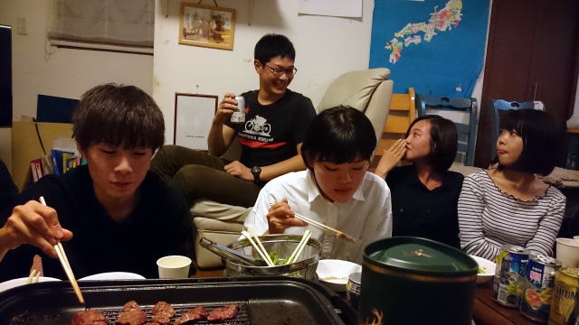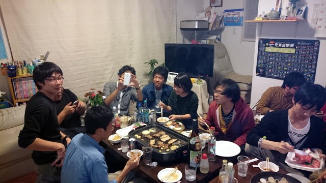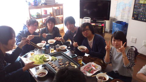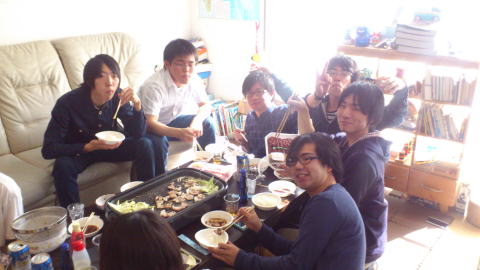 2013/6/14 研究室焼き肉(このポーズは意味不明)