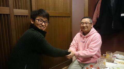 2006/12/2 合同新歓 原田(右)楽しそうです.左は藤井さん.