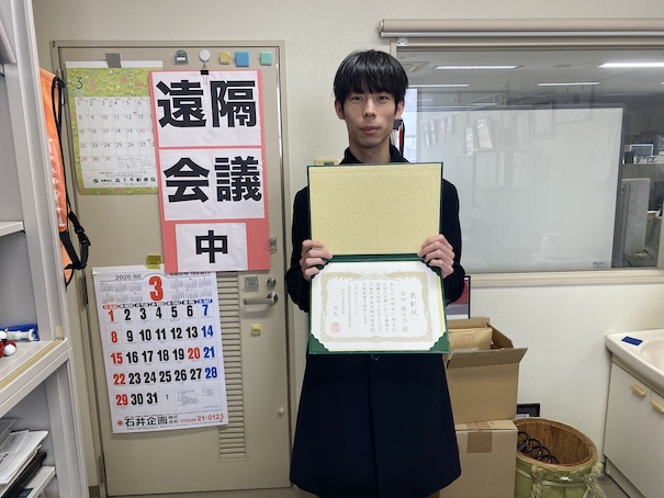祝 廣瀬稜 卒業論文発表会優秀賞 受賞