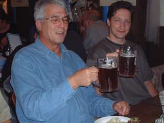 みんな中ジョッキなのに、なぜかバスタクさんと私のジョッキだけ、特大ジョッキです。さすがに本場ドイツのビールは格別です。
