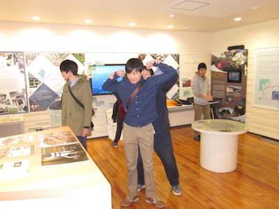 室戸世界ジオパークセンターです。石井研の学生さんは皆さん科学者なので、熱心にパネルを眺めています。