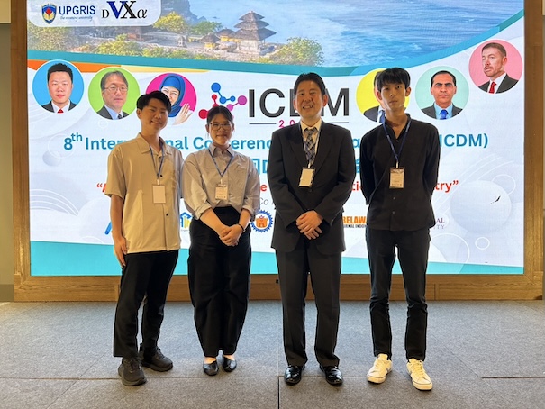 DV-Xα国際会議(8th International Conference on DV-Xα Method (ICDM2025))が、インドネシア、バリで開催されました。石井研の学生は3名(高下さん、高田さん、青江さん)が参加しました。エクスカーションでは、ウルワツ寺院に行ってきました。今回バリでは、大洪水が発生しました。当初、250名以上の方から参加申込をいただいておりましたが、洪水の影響で移動することができず、140名以上もの方が、国際会議の会場に到着することができませんでした。次回のICDMでまたお会いできますことを楽しみにしております。