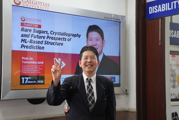 2026年3月17日・18日にインドのGalgotias大学を訪問した。本訪問は、インドにおける先進的IT教育拠点であるGalgotias大学との研究交流の深化(特にAI・データサイエンスおよび計算科学分野)を目的として実施されたものであり、講演、研究交流、施設視察を通じて、今後の共同研究の可能性を確認した。