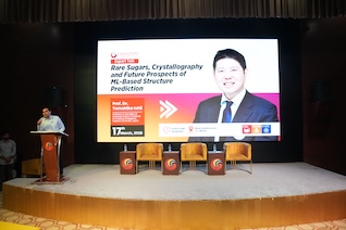 講演に加えて、研究ディスカッションも実施した。本学において進めている「希少糖の単結晶X線構造解析」と、Galgotias大学が強みとする機械学習技術との融合に関する議論を行った。