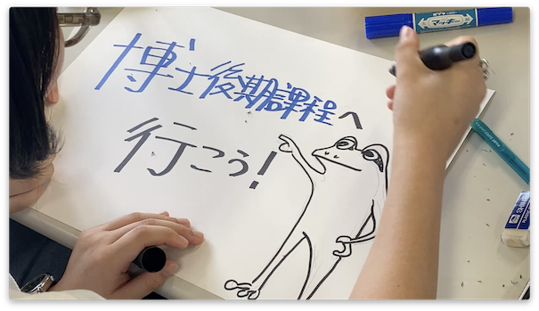 令和7年8月22日、高下さんと前田さんが、『博士フェスティバル』に向けて動画を撮影しました。動画を視聴する多くの学生が、博士後期課程への進学を希望されるものと思います。安岡さんと後藤さんと藤原さんには、いつも大変お世話になっております。