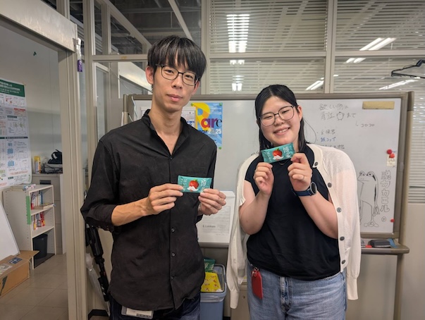 令和7年8月22日、田原先生から福岡のおみやげを頂きました。いつも熊代さんのきれいな単結晶を測定させていただき、大変光栄です。ありがとうございます。